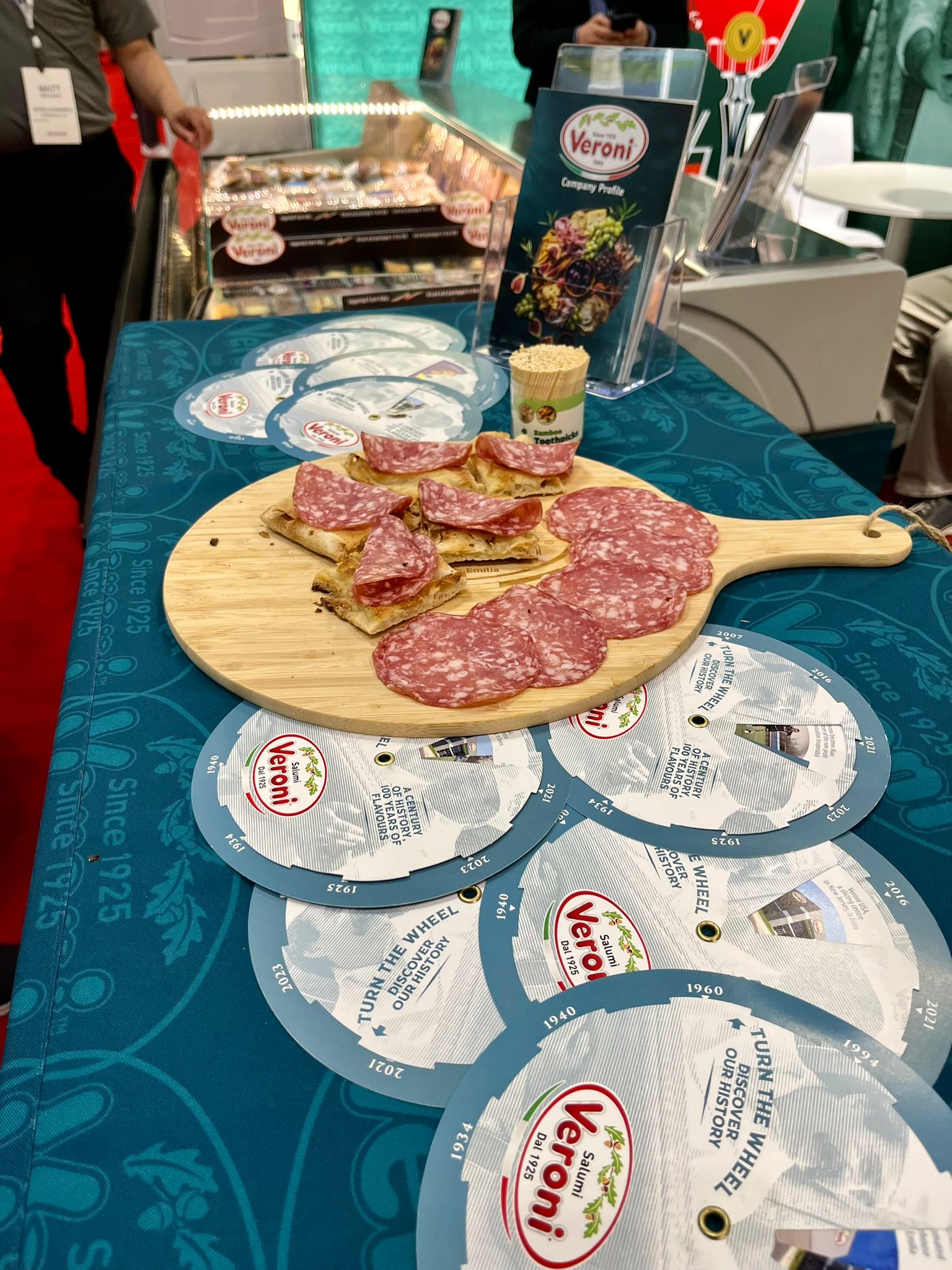 Tra i protagonisti del nostro stand, la Mortadella “Grill & Enjoy”: molto apprezzata in Italia, è stata presentata in anteprima negli Stati Uniti per esplorare nuovi orizzonti di gusto. La Mortadella piace sempre di più anche negli States, e questa fetta gigante da 400 grammi con un diametro di 22 cm e uno spessore di 2 cm, si presta ad essere valorizzata in tanti modi: grigliata, tagliata a cubetti, utilizzata come ripieno per polpette e involtini.