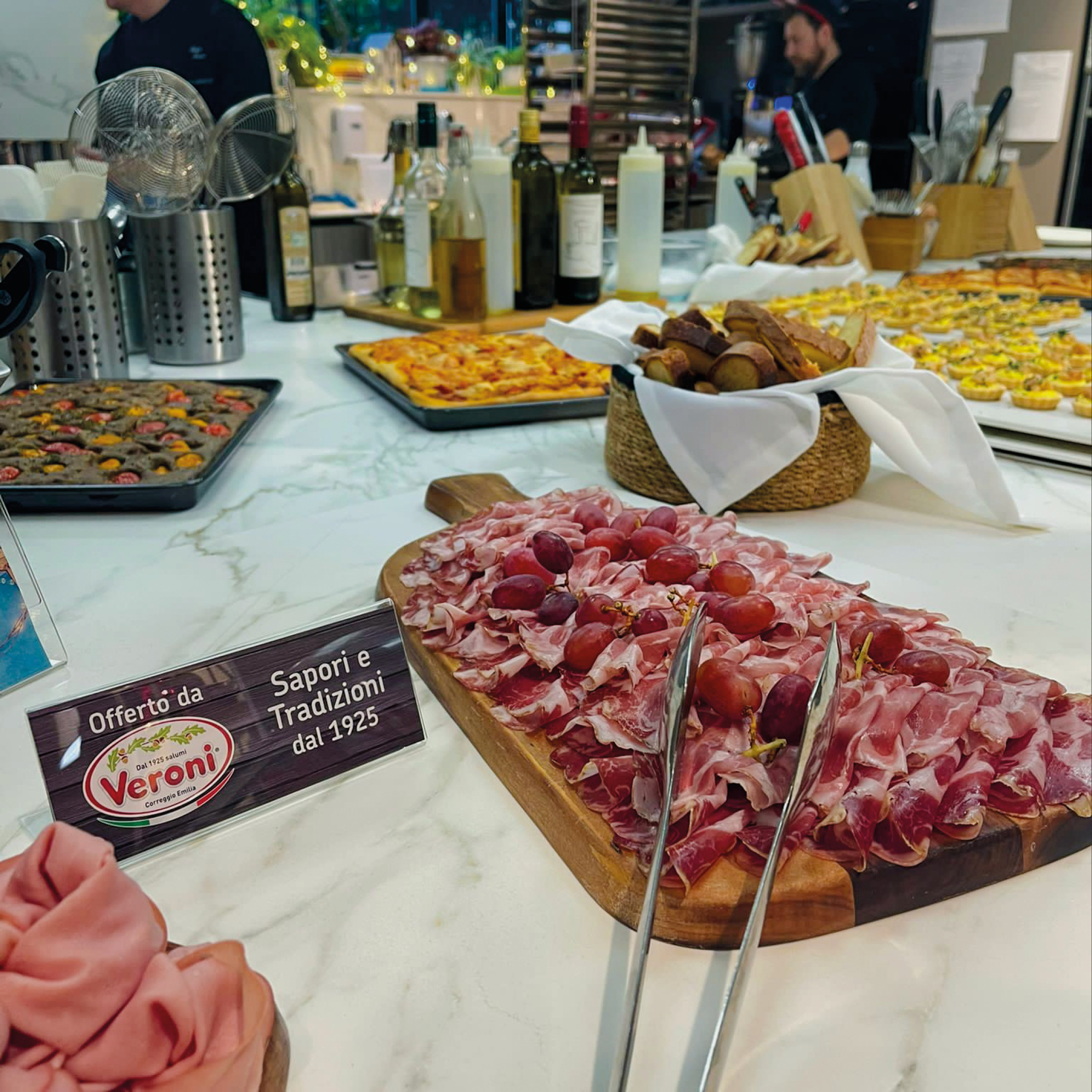 Dall’aperitivo al grande buffet del pranzo, ogni momento è stata un’occasione speciale per gustare la tradizione e la bontà dei nostri salumi, magistralmente disposti su invitanti taglieri con frutta: dalla nostra mortadella light Briosa alla Coppa della Tradizione, oltre ai taglieri di Salame Felino e di Crudo di Parma. Un trionfo di assaggi, sorrisi e chiacchiere.