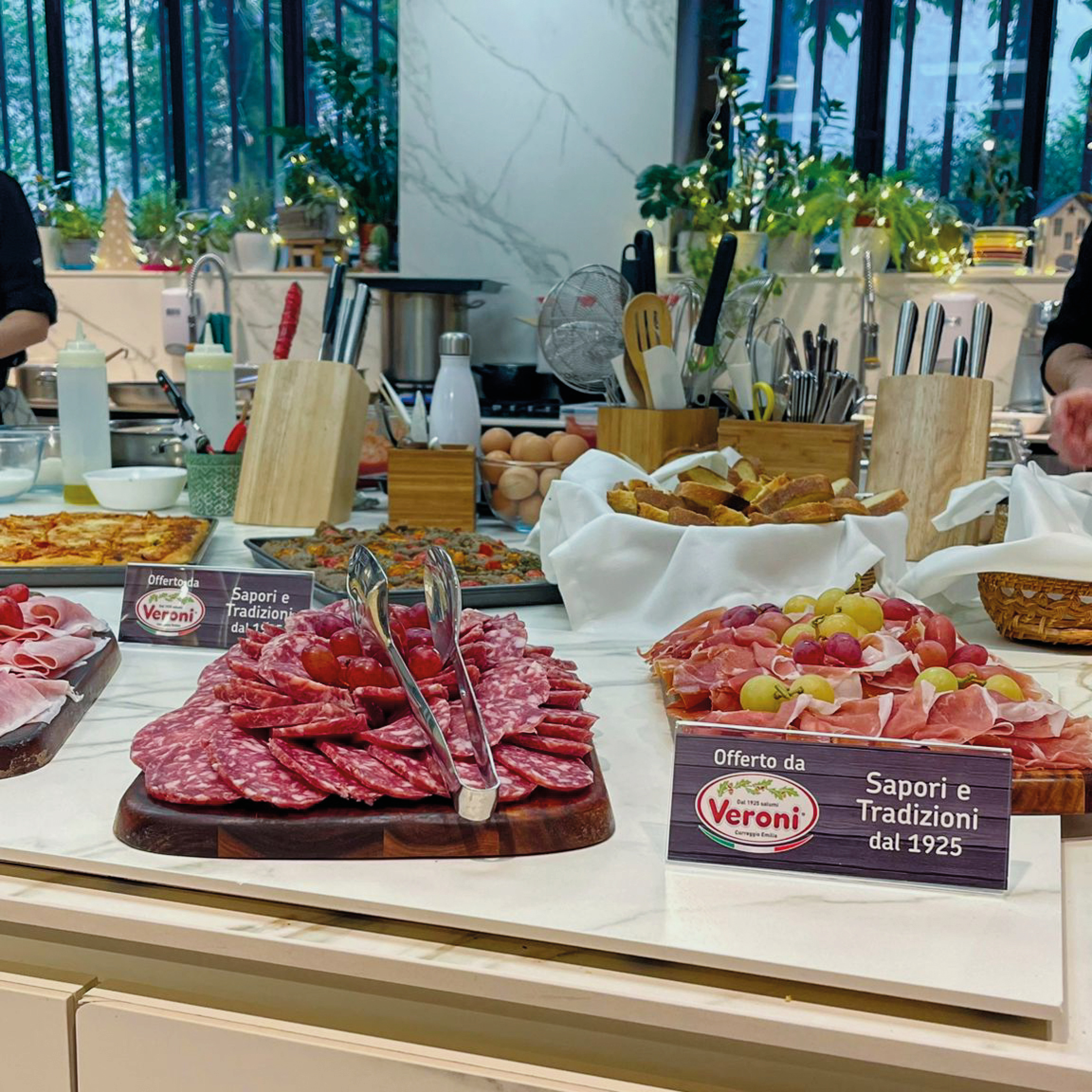 Per il pranzo, organizzato nell’area living tra lasagne, sformati, risotti, polenta, non sono mancate le code davanti a Stinco, Cotechino e Zampone rigorosamente Veroni. A proposito, sapete qual è la differenza tra i due must del Natale? Sonia l’ha chiesto ai suoi invitati e probabilmente non tutti hanno risposto nella maniera esatta… Ci ha pensato la nostra Maria Vittoria Zini del team marketing Veroni a spiegarlo al pubblico una volta per tutte!
