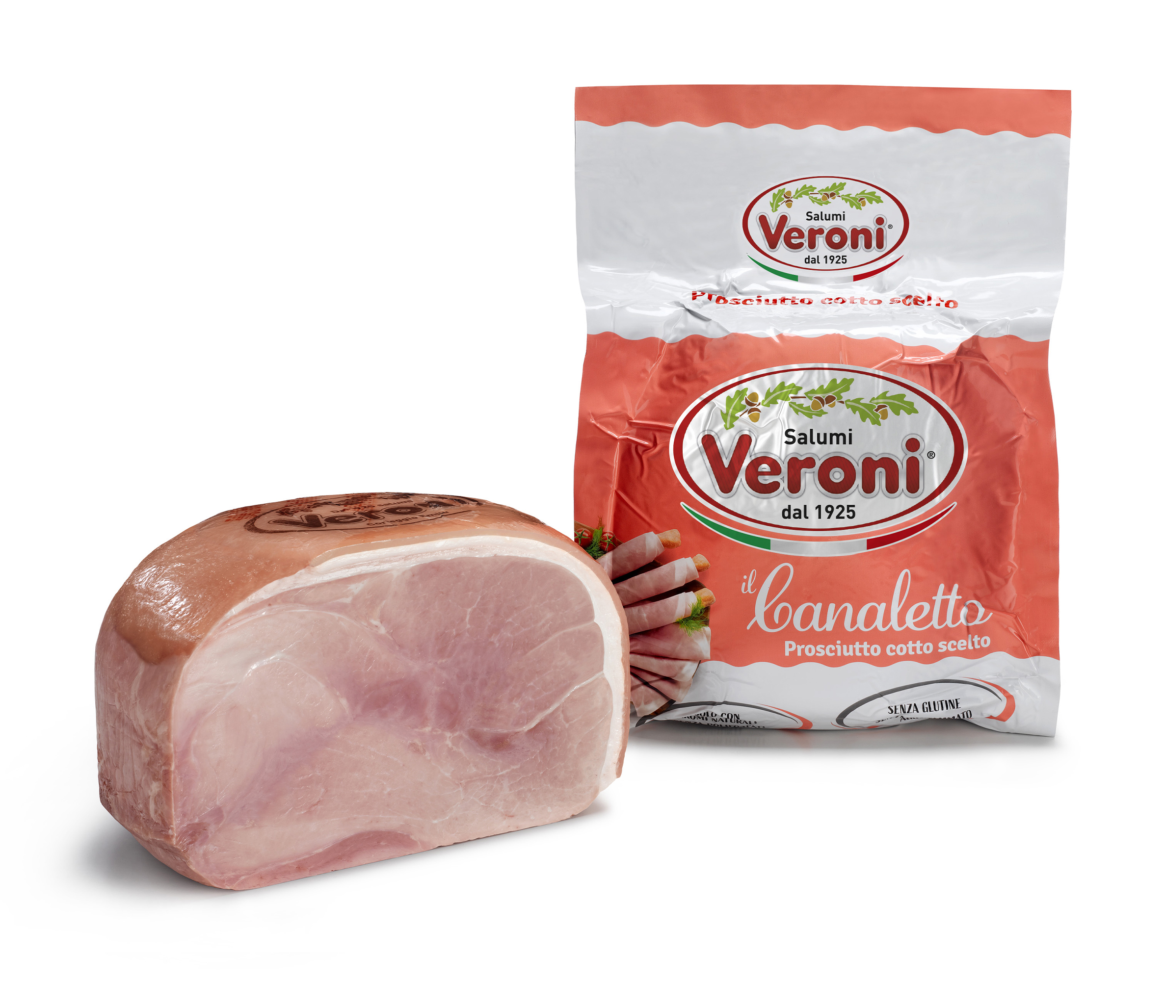 Ein gekochter Schinken mit mildem und zartem Geschmack. Der Canaletto Schinken zeichnet sich durch sein zartes Aroma und die hellrosa Farbe aus.