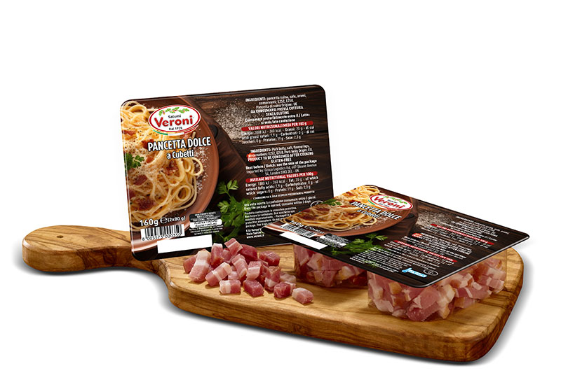 Five slices of mortadella with 22cm in diameter, vacuum-packed: a unique product for both the Italian and foreign market. All flavors of Veroni’s mortadella in a modern and innovative pack.