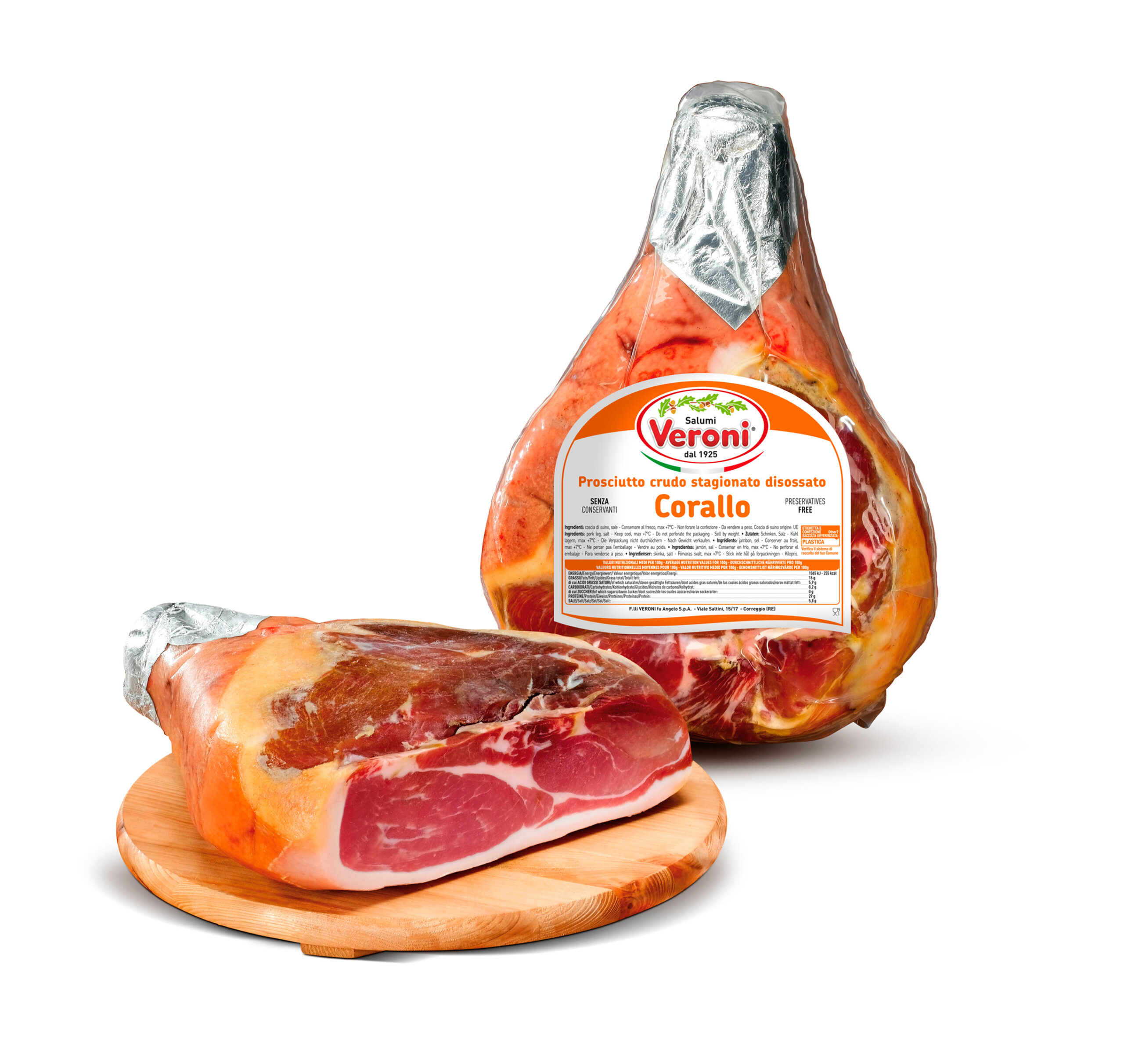 A prosciutto with a delicate and persistent fragrance, with a well-balanced, round and pleasant flavour, available in different versions and sizes. Pressed and washed.