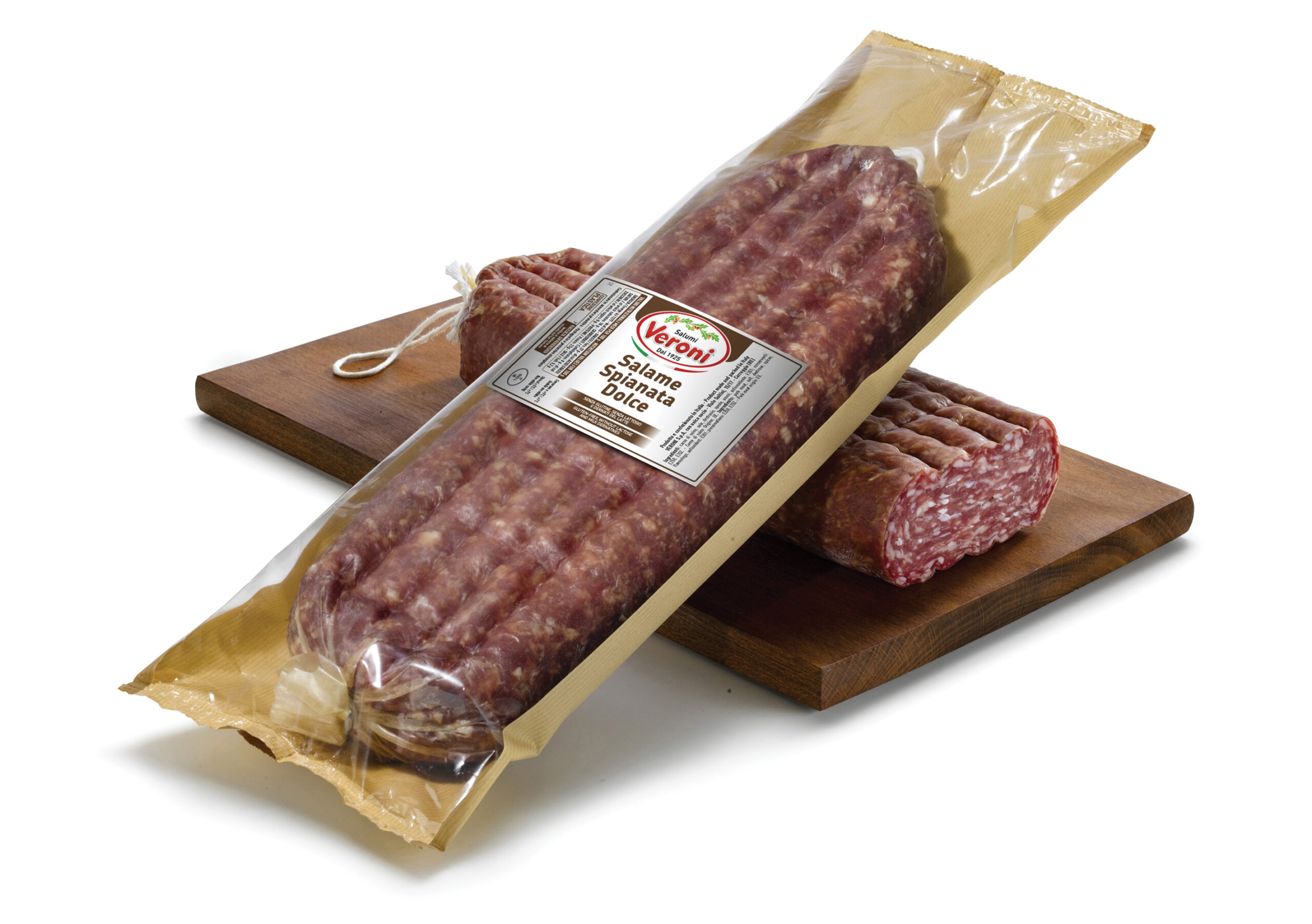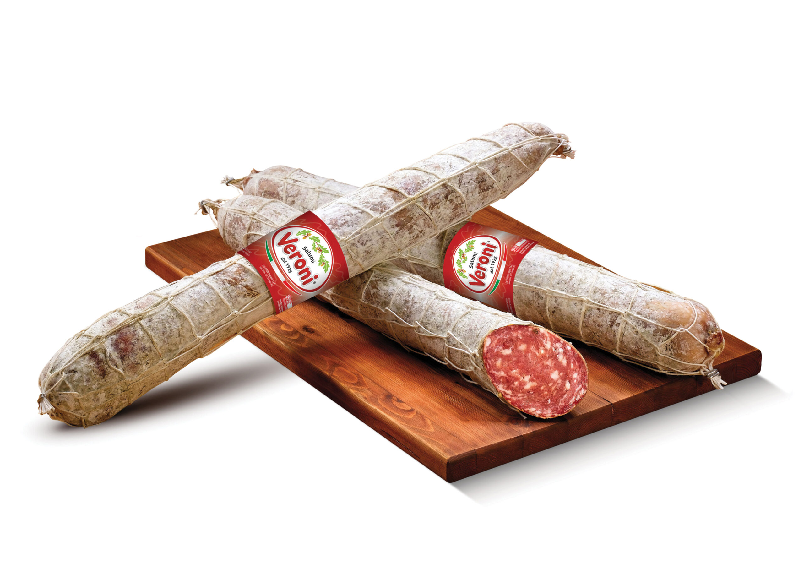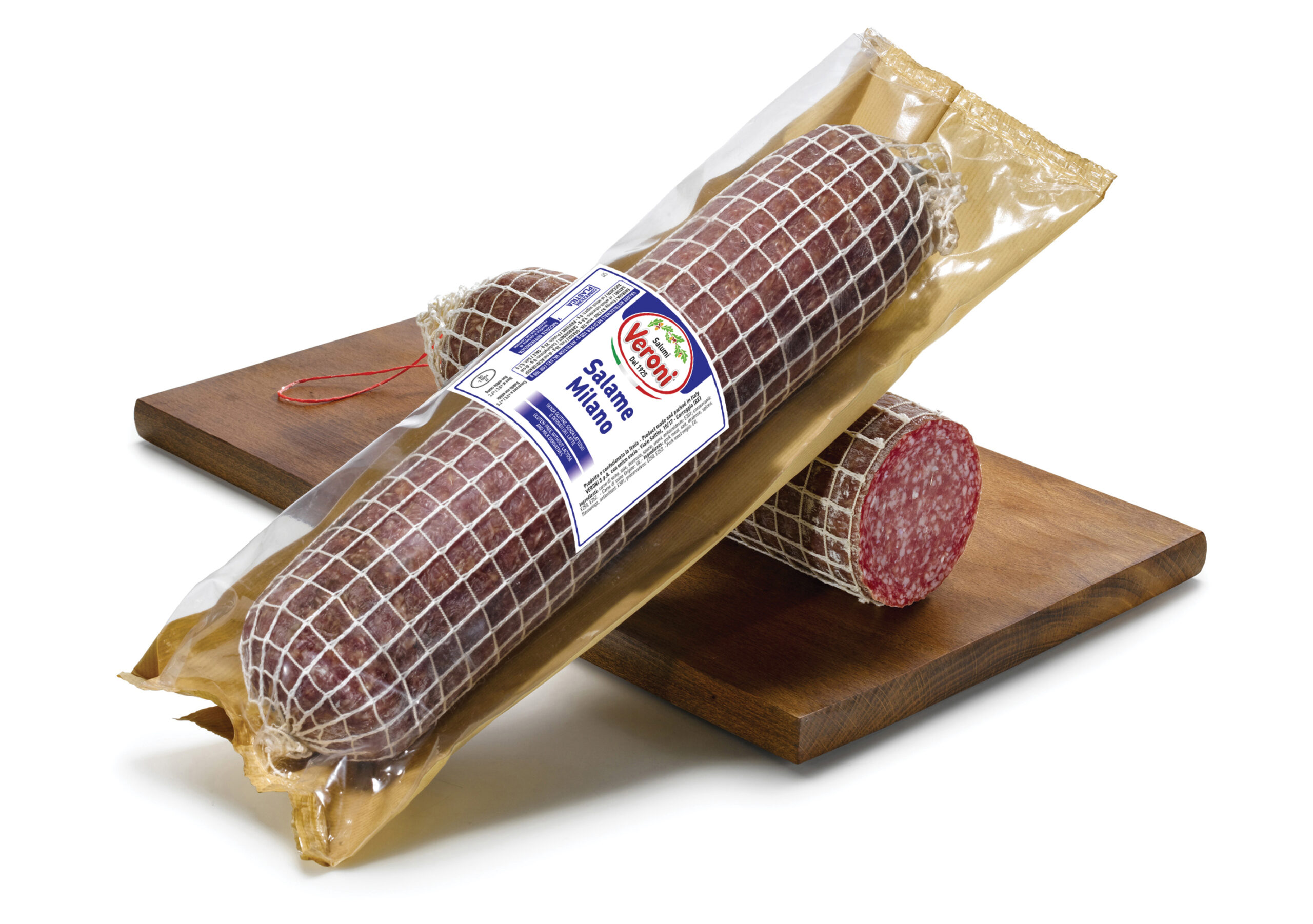 slice; In the mild version, the Napoli salami is recognised for its enveloping flavour. Made with a synthetic casing.