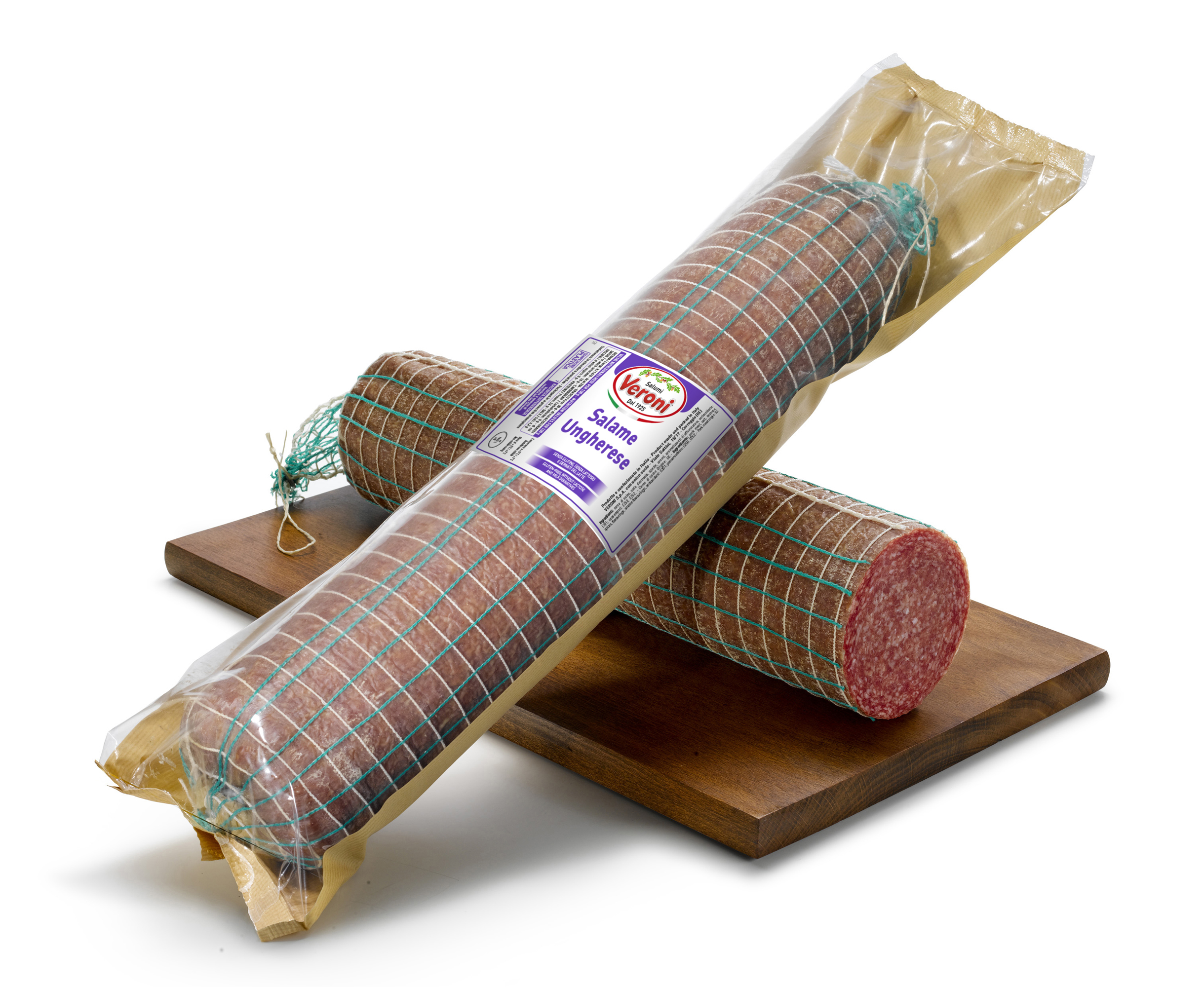 This salami has a mixture consisting of pork, fat, garlic and a particular selection of flavours and spices. The spicy version is recognised for its lively taste and the bright red colour of the